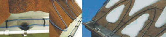 發熱電纜融雪化冰系統適用于各種屋頂建筑,可以防止融化的冰雪留于天溝,并可保護房屋正面及屋頂不受冰雪損害??捎糜谂潘疁?、屋頂天溝的融雪化冰和屋面融雪。 |