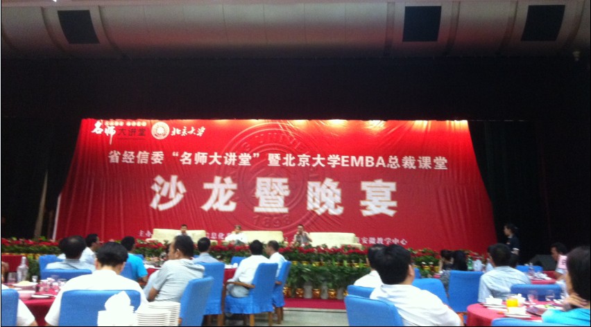 由省經信委、北京大學邀請名師大講堂知名講師,協作舉辦的EMBA總裁課程,眾多企業的管理層人員齊聚一堂交流企業管理經驗。此次授課為期2天,并與今日落下帷幕。晚宴上,省信委領導出席主持,話語中透露著對各個行業管理人員的期許,正是因為有你們的正確的領導,才能延續企業的活力,才能振興國民經濟。晚宴上處處洋溢著積極上進的熱情氛圍。
