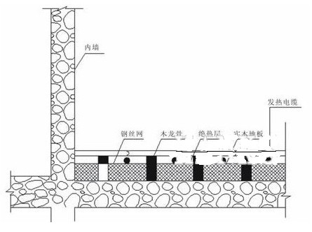 ◆6 安裝木地板注意事項:安裝固定木地板時應避開穿越龍骨處的發熱電纜,以免損壞發熱電纜。
